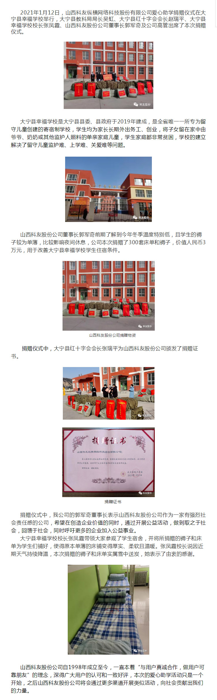 山西科友股份公司献爱心捐赠大宁县幸福学校